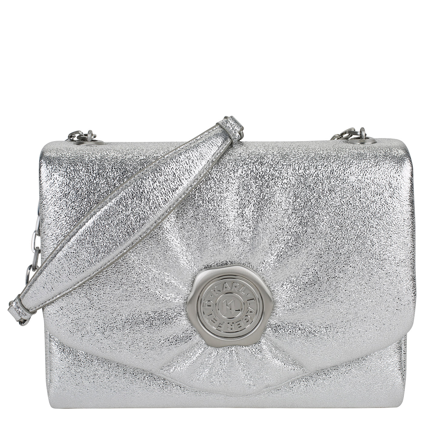 Сумка с цепочкой Karl Lagerfeld Stamp 236W3021/290 - 2000558580861 серебряный полиэстер, полиуретан 29,5 x 22 x 8 Цена 19590 руб. купить в интернет-магазине PanChemodan.ru в Ярославле