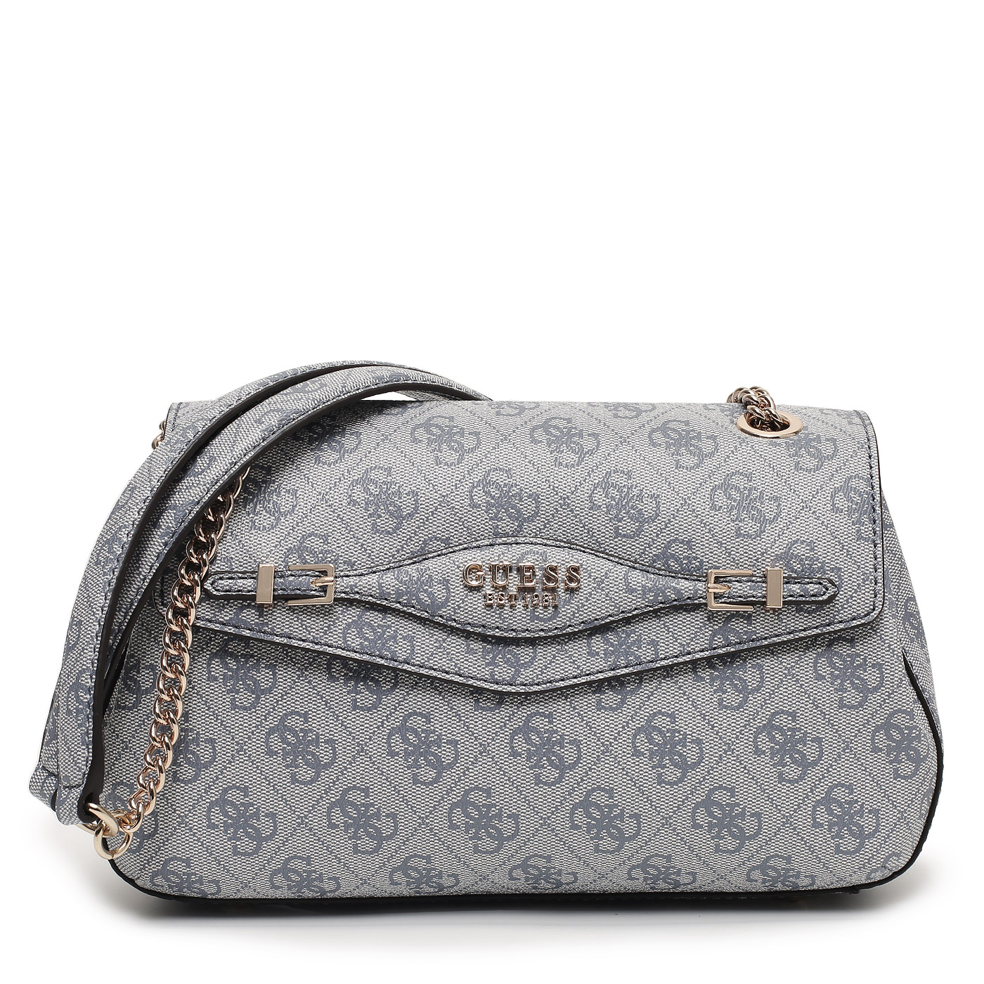 Сумка с ручками-цепочками Guess Katya HWSG96 52210_slate logo_pc - 2000558780452 голубой полиуретан 26 x 15 x 8 Цена 9250 руб. купить в интернет-магазине PanChemodan.ru в Иркутске